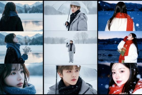 Ngược lại, nếu bạn muốn tùy chỉnh mạnh hơn, kiểm soát từng chi tiết trong bố cục và cảm xúc của nhân vật, Gemini AI sẽ là công cụ phù hợp. Bạn có thể thử nghiệm nhiều prompt, điều chỉnh ánh sáng, màu sắc và bối cảnh để tạo bộ ảnh phong cách điện ảnh hoàn hảo. Ngoài ra, bạn cũng có thể kết hợp cả hai công cụ: tạo ảnh bằng Gemini AI để có bức ảnh chuẩn phim, sau đó chỉnh sửa thêm bằng Meitu để tăng hiệu ứng, crop bố cục hoặc thêm các chi tiết tuyết rơi lãng mạn.