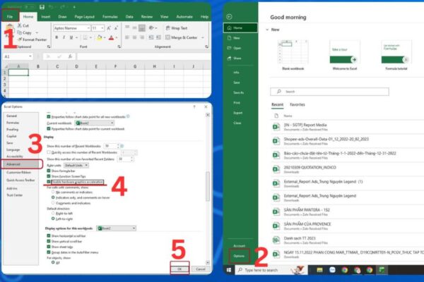 Sau khi hoàn tất, bạn nên khởi động lại Excel và mở lại file cần kiểm tra. Nếu nguyên nhân đến từ xung đột đồ họa, việc tắt tăng tốc phần cứng sẽ giúp Excel hiển thị dữ liệu trở lại bình thường.