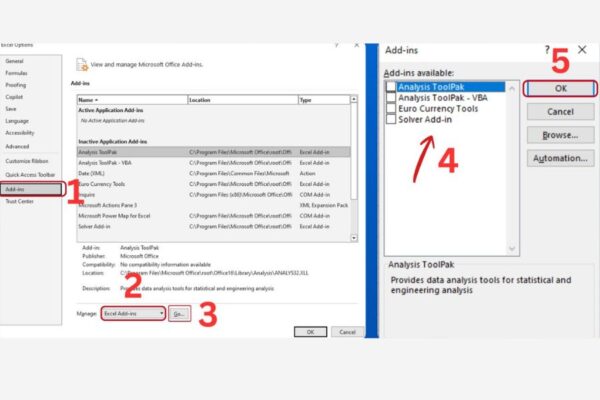 Add-ins là các tiện ích bổ sung giúp mở rộng chức năng của Excel, ví dụ như Power Query, Analysis ToolPak hoặc các plugin do bên thứ ba phát triển. Mặc dù rất hữu ích, nhưng nếu add-in bị lỗi, không tương thích với phiên bản Excel hoặc xảy ra xung đột hệ thống, chúng có thể khiến Excel hoạt động không ổn định. Một trong những biểu hiện phổ biến là file mở ra nhưng không hiển thị dữ liệu.