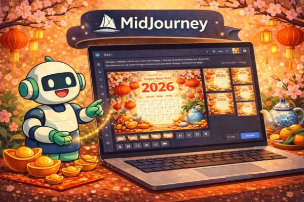 MidJourney là một trong những công cụ AI tạo hình ảnh mạnh mẽ và được cộng đồng sáng tạo sử dụng rộng rãi hiện nay. Với khả năng chuyển đổi mô tả văn bản thành hình ảnh nghệ thuật chất lượng cao, MidJourney trở thành lựa chọn lý tưởng cho những ai muốn thiết kế lịch Tết 2026 mang phong cách độc quyền và khác biệt. Thay vì sử dụng các hình ảnh có sẵn, bạn có thể tự tạo ra những hình minh họa hoàn toàn mới, mang đậm dấu ấn cá nhân hoặc bản sắc thương hiệu.