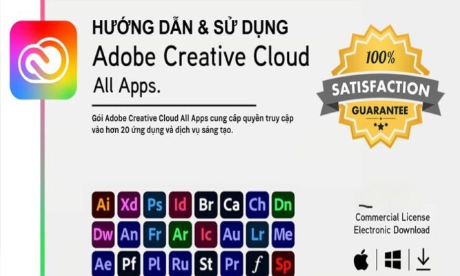 - Toàn quyền truy cập Apps Adobe: Gồm cả Photoshop, Illustrator, Premiere, After Effects, InDesign, Lightroom, XD, Audition, Acrobat Pro, Media Encoder…