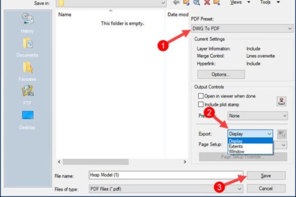 - Display: Chỉ xuất phần bản vẽ đang hiển thị trên màn hình.