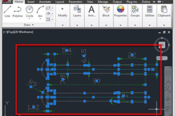 Tiếp theo, bạn mở file bản vẽ trong phần mềm AutoCAD. Di chuyển chuột để chọn đúng khu vực bản vẽ cần đưa vào tài liệu Word. Thông thường, bạn chỉ nên chọn phần bản vẽ quan trọng để tài liệu gọn gàng và dễ trình bày hơn.