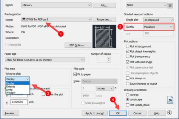 - Chọn chất lượng PDF phù hợp: Khi xuất PDF, nên chọn mức chất lượng cao để giữ được độ sắc nét của bản vẽ kỹ thuật.
