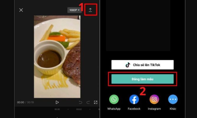 Việc chọn “Tạo mẫu” thay vì chỉ xuất video về máy sẽ giúp bạn chia sẻ video dưới dạng mẫu để cộng đồng người dùng khác có thể tải về và sử dụng. Đây là cách tốt nhất để video của bạn lan tỏa rộng rãi và nhanh chóng trở nên phổ biến trên nền tảng.
