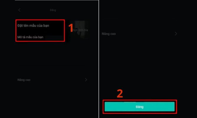 Ở bước này, bạn cần đặt tên video và viết phần mô tả thật hấp dẫn. Hãy lựa chọn tiêu đề ngắn gọn, dễ nhớ, có chứa từ khóa liên quan để tăng khả năng tìm kiếm trên CapCut. Phần mô tả nên giải thích rõ ràng nội dung hoặc chủ đề video, đồng thời khuyến khích người dùng tải mẫu về để sử dụng.