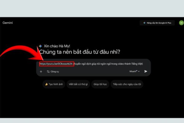 Đầu tiên, bạn truy cập vào trang Gemini tại https://gemini.google.com/app và đăng nhập bằng tài khoản Google của mình. Sau khi vào giao diện chính, bạn có thể bắt đầu bằng cách cung cấp video mà mình muốn dịch. Nếu video nằm trên YouTube, chỉ cần dán đường link vào khung trò chuyện để Gemini phân tích nội dung. Trong trường hợp video được lưu sẵn trên máy tính, bạn chỉ cần nhấn vào biểu tượng “+” để tải tệp video lên. Sau đó, nhập lệnh yêu cầu như “Dịch video này sang tiếng Việt” hoặc “Translate this video to English” để Gemini bắt đầu xử lý.