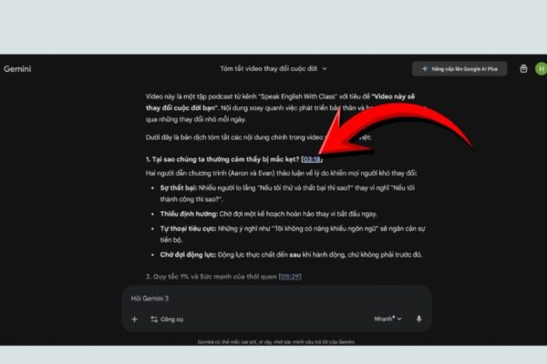 - Sinh viên và học sinh: Gemini giúp dịch nhanh các video bài giảng, hội thảo hoặc tài liệu học tập bằng tiếng nước ngoài. Nhờ bản dịch kèm mốc thời gian, bạn có thể dễ dàng ghi chú lại những nội dung quan trọng để ôn tập.