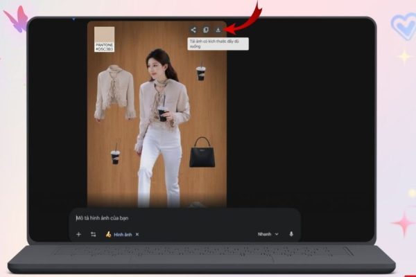 Khi đã hài lòng, bạn chỉ cần tải hình ảnh về máy để lưu trữ hoặc chia sẻ lên mạng xã hội. Những ảnh phân tích outfit kiểu này rất phù hợp để đăng TikTok, Instagram, Pinterest hoặc dùng làm nội dung xây dựng hình ảnh cá nhân trong lĩnh vực thời trang.
