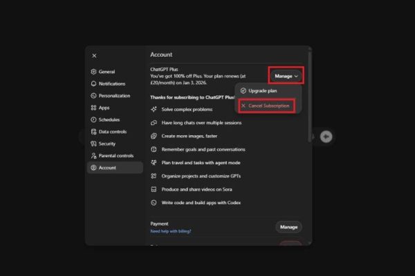 3. Hướng dẫn hủy gia hạn ChatGPT Plus sau khi dùng thử