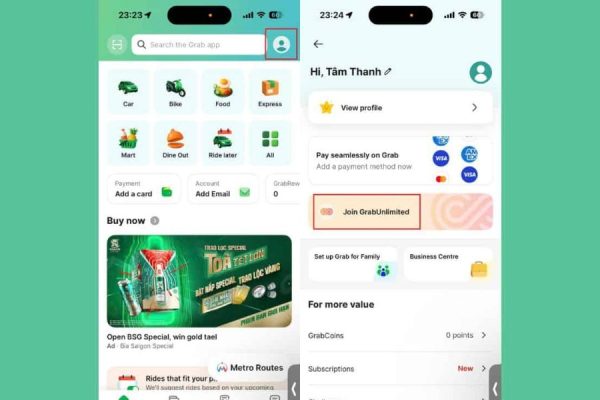 2.2 Bước 2: Kích hoạt gói hội viên Grab Unlimited
