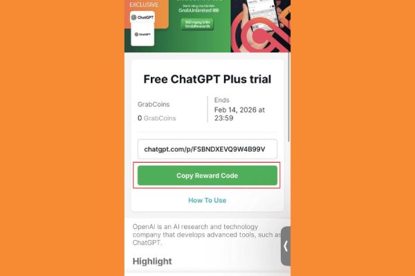 2. Hướng dẫn cách nhận ChatGPT Plus miễn phí qua App Grab