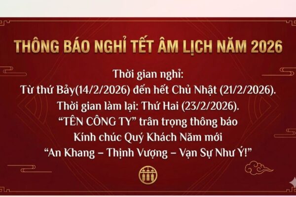THÔNG BÁO NGHỈ TẾT ÂM LỊCH NĂM 2026