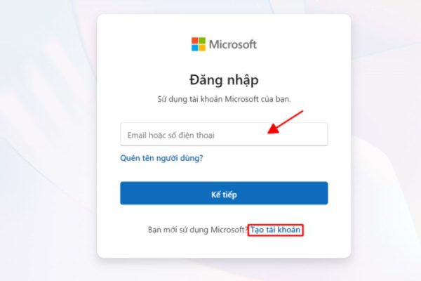 1.2 Bước 2: Đăng nhập hoặc tạo tài khoản Microsoft