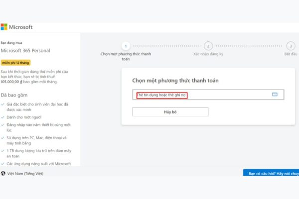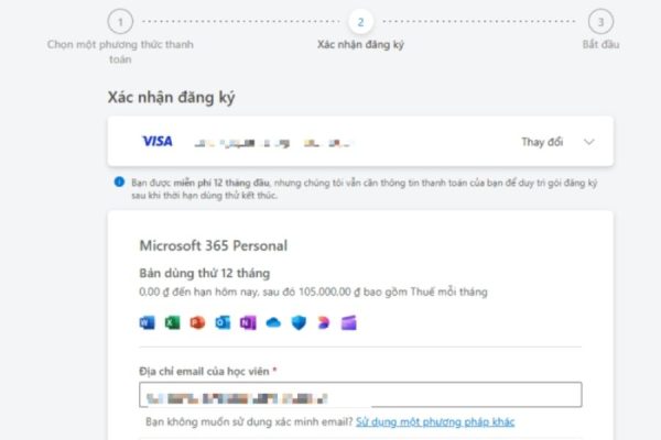 Đừng lo lắng, việc thêm phương thức thanh toán không có nghĩa bạn sẽ bị trừ phí ngay. Vì đây là gói miễn phí dành cho sinh viên, Microsoft chỉ dùng thông tin thanh toán để xác nhận danh tính và tự động hóa việc gia hạn (nếu bạn muốn dùng tiếp sau 12 tháng). Việc này giúp hạn chế gian lận và đảm bảo chỉ sinh viên thật sự mới được nhận ưu đãi.