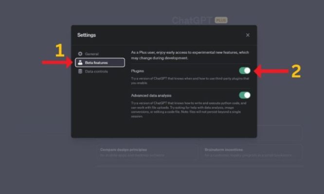 Khi cửa sổ Setting & Beta được mở, bạn sẽ thấy một danh sách các tính năng nâng cao. Hãy nhấn vào mục “Beta Features”. Trong đây, ChatGPT cung cấp nhiều lựa chọn thử nghiệm, trong đó có Plugin. Để tiếp tục, hãy gạt nút kích hoạt tính năng này sang trạng thái ON.
