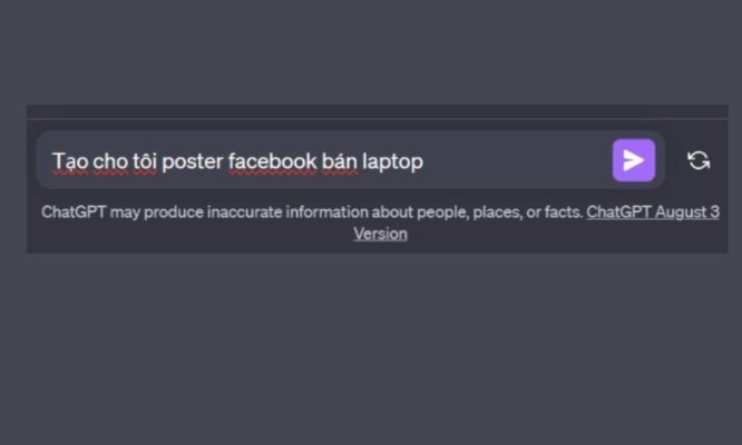 Tiếp theo, bạn hãy nhập dòng lệnh mô tả yêu cầu thiết kế vào ô chat. Hãy mô tả càng chi tiết càng tốt để ChatGPT hiểu chính xác mong muốn của bạn. Ví dụ: “Thiết kế một poster quảng cáo mỹ phẩm với tông màu hồng pastel, phong cách tối giản, chữ nổi bật và hiện đại.”