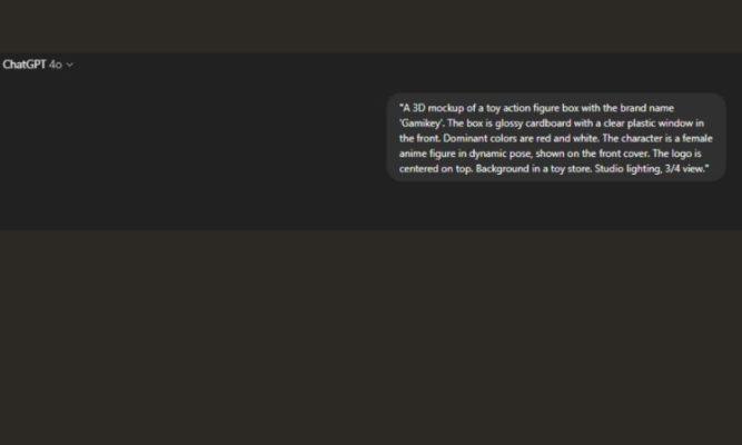 Prompt chính là chìa khóa để ChatGPT hiểu ý tưởng của bạn. Bạn cần mô tả rõ ràng chủ đề/nhân vật chính, kiểu hộp (ví dụ action figure), chất liệu, màu sắc, logo, bố cục, ánh sáng và bối cảnh. Ví dụ: