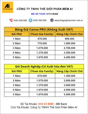 Bảng Giá Canva Pro tại Công Ty TNHH Thế Giới Phần Mềm