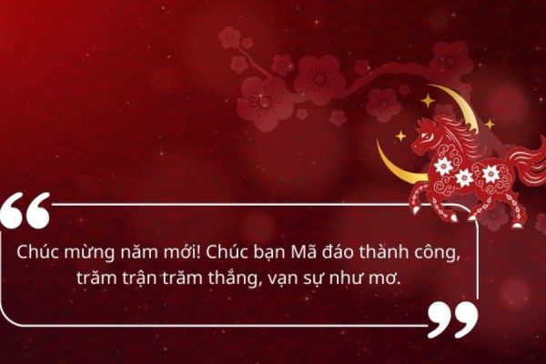 - Chúc mừng năm mới! Chúc bạn mã đáo thành công, mọi dự định đều thuận lợi, trăm việc đều suôn sẻ như ý.