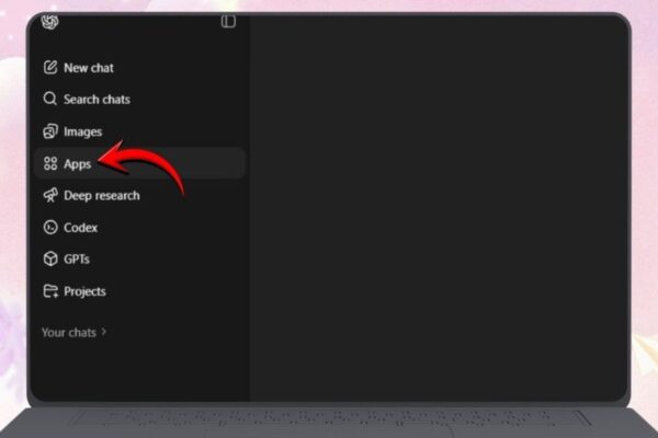 Khi đã vào giao diện chính, bạn quan sát thanh menu bên trái màn hình. Tại đây sẽ có mục Apps – nơi tập hợp các ứng dụng có thể kết nối trực tiếp với ChatGPT để mở rộng tính năng.