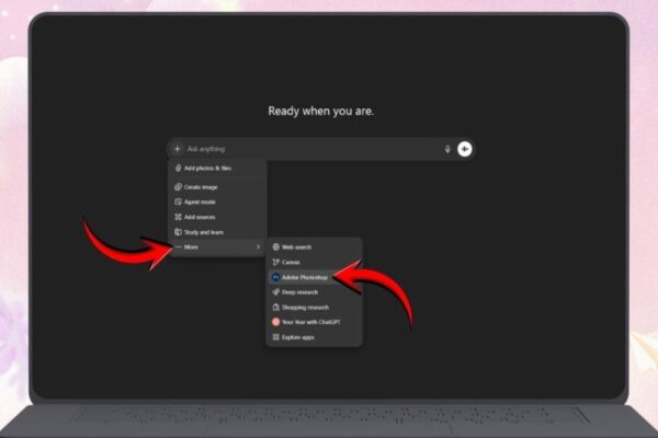 Sau khi xác nhận thành công, Photoshop sẽ được tích hợp trực tiếp vào ChatGPT. Lúc này, bạn đã sẵn sàng sử dụng các công cụ chỉnh sửa hình ảnh mà không cần mở phần mềm riêng trên máy tính.