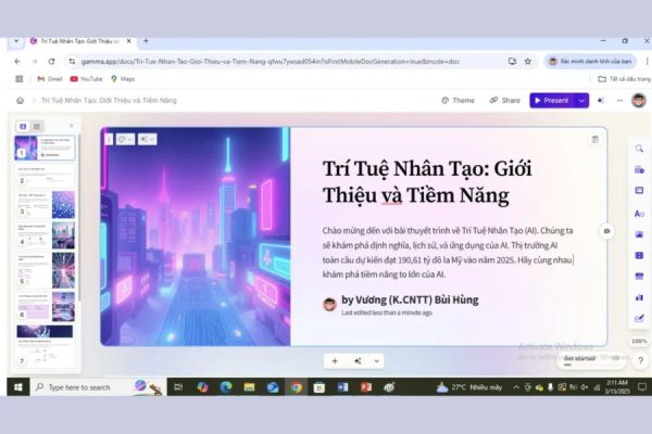 4.3 Bước 3: Tải slide lên Gamma AI để hệ thống phân tích nội dung