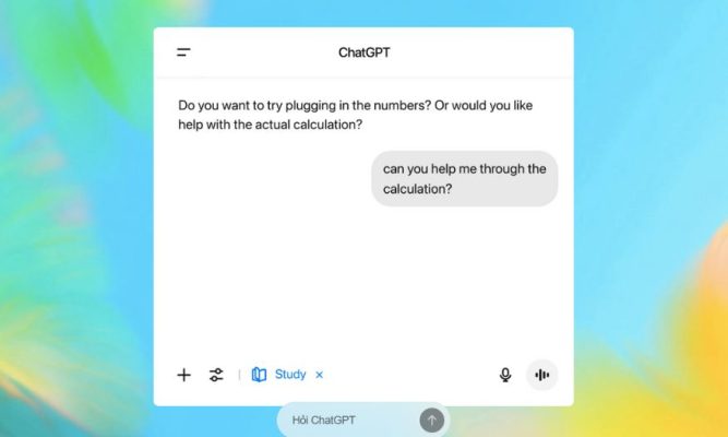 - Sau khi kích hoạt, bạn có thể tương tác trực tiếp với chế độ học tập bằng cách nhập câu hỏi hoặc chủ đề mà mình muốn tìm hiểu. Thay vì nhận được câu trả lời ngay lập tức, ChatGPT sẽ dẫn dắt bạn qua các bước học tập, sử dụng các phương pháp gợi mở, câu hỏi kiểu Socrate, và phản hồi cá nhân hóa dựa trên trình độ của bạn. Quá trình này giúp bạn vừa học kiến thức vừa rèn luyện tư duy phản biện, từ việc nhận biết các khái niệm cơ bản đến việc phân tích và áp dụng vào tình huống thực tế.