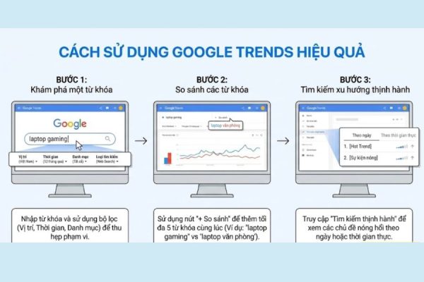 Google Trends không đơn thuần là một công cụ theo dõi xu hướng mà còn đóng vai trò như “bộ não dữ liệu” hỗ trợ doanh nghiệp và marketer đưa ra quyết định chiến lược chính xác. Thông qua việc phân tích hành vi tìm kiếm theo thời gian, khu vực và mức độ quan tâm, Google Trends giúp bạn hiểu rõ người dùng đang cần gì, quan tâm điều gì và khi nào nhu cầu đó đạt đỉnh. Khi được ứng dụng đúng cách, công cụ này có thể tối ưu toàn bộ quy trình từ nghiên cứu từ khóa, sáng tạo nội dung, xây dựng thương hiệu cho đến quảng cáo và SEO địa phương, giúp bạn đi trước đối thủ một bước trong cuộc đua tiếp thị số.