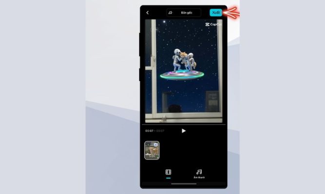 Khi đã hoàn toàn hài lòng với thành phẩm, bạn chỉ cần nhấn nút “Xuất” ở góc trên bên phải màn hình. Tùy vào độ dài video và cấu hình điện thoại, quá trình xuất sẽ mất từ vài giây đến một phút.