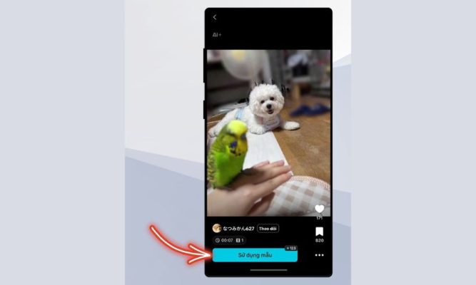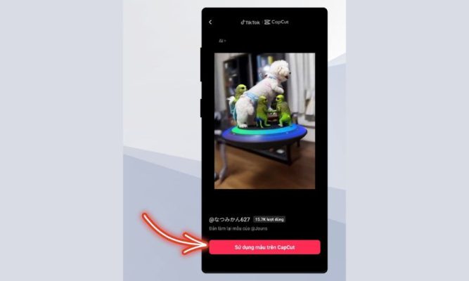Khi bạn bấm vào video có gắn mẫu, TikTok sẽ hiển thị một nút đỏ nổi bật với nội dung “Sử dụng mẫu trên CapCut”. Đây chính là cách nhanh nhất để bạn áp dụng trực tiếp hiệu ứng đang hot mà không cần chỉnh sửa phức tạp.