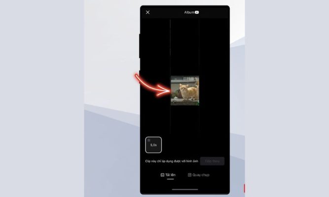 Ở bước này, CapCut sẽ yêu cầu bạn chọn một hình ảnh để thay thế nhân vật trong video. Hãy chọn bức ảnh mèo mà bạn muốn biến thành “nhân vật chính”.