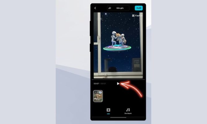 Bạn có thể thêm nhạc nền cho sinh động hơn, chọn bản nhạc viral có sẵn trên CapCut hoặc tải file âm thanh phù hợp. Ngoài ra, bạn cũng có thể chỉnh sửa thời lượng, chèn chữ hài hước hoặc thêm hiệu ứng phụ để video thêm phần sáng tạo và khác biệt.