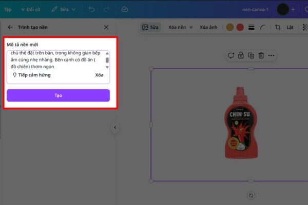 Sau khi mở trình chỉnh sửa nền, Canva sẽ yêu cầu bạn nhập mô tả về phông nền mới mà bạn muốn tạo. Đây là bước quan trọng vì AI sẽ dựa vào nội dung mô tả để tạo ra khung cảnh phù hợp. Bạn nên viết mô tả rõ ràng về không gian, ánh sáng, màu sắc hoặc phong cách hình ảnh.