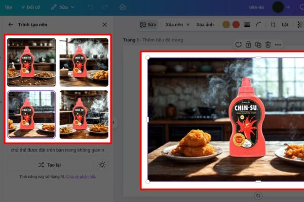 Không chỉ dừng lại ở việc thay nền có sẵn, công cụ này còn cho phép người dùng tạo phông nền mới dựa trên phong cách, màu sắc hoặc bối cảnh mong muốn. Bạn có thể biến một bức ảnh chụp đơn giản thành hình ảnh sản phẩm chuyên nghiệp, đặt nhân vật vào khung cảnh sáng tạo hoặc thay đổi không gian cho phù hợp với nội dung truyền thông. Chính sự linh hoạt này giúp việc thiết kế trở nên chủ động và thú vị hơn rất nhiều.