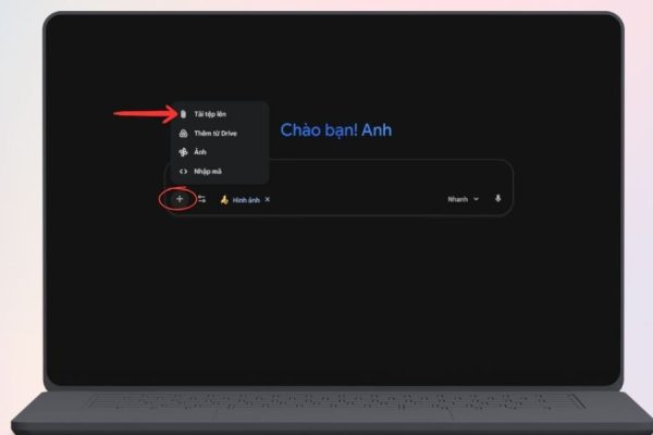 Khi đã chuẩn bị xong, bạn nhấn vào dấu cộng và chọn Tải tệp lên, sau đó chọn ảnh từ thiết bị của mình. Chỉ mất vài giây để ảnh được tải hoàn tất lên Gemini.