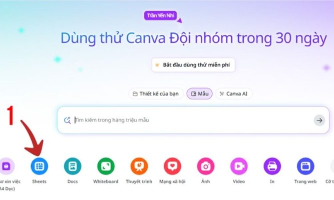 Để bắt đầu, hãy mở trang Canva.com và đăng nhập vào tài khoản của bạn. Tại giao diện chính, tìm và nhấn vào mục Sheets để tạo bảng tính mới. Đây là bước đầu tiên quan trọng giúp bạn tiếp cận công cụ bảng tính trực quan ngay trong Canva mà không cần mở Excel hay Google Sheets.