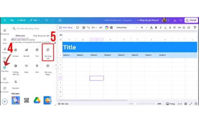 3. Hướng dẫn dùng tính năng Canva Sheets