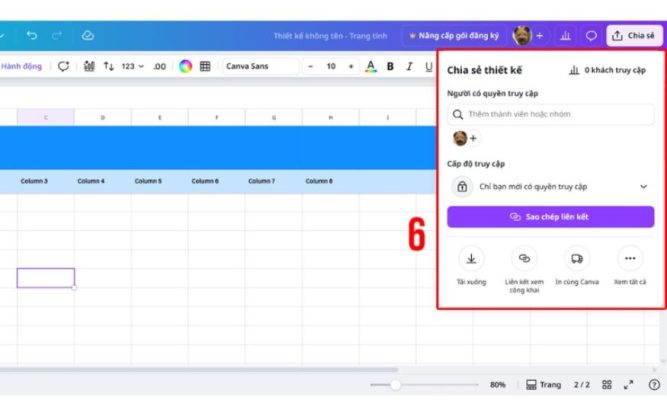Mọi thao tác trên Canva Sheets đều được tự động lưu trên tài khoản của bạn, nhờ đó dữ liệu luôn an toàn và không bị mất. Bạn có thể dễ dàng chia sẻ bảng tính với đồng nghiệp hoặc nhóm làm việc qua liên kết, giúp cộng tác theo thời gian thực mà không cần gửi file qua email.