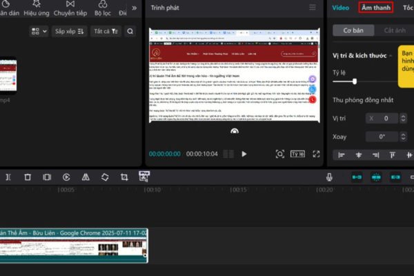 - Bước 3: Nhấp vào đoạn video → mở tab “Âm thanh” ở góc phải màn hình.