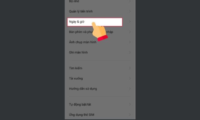 - Bước 2: Chọn Ngày và giờ, rồi bật chế độ tự động cập nhật thời gian để hệ thống tự đồng bộ theo múi giờ chính xác.