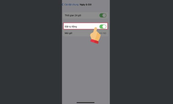 - Bước 2: Chọn Ngày và giờ, sau đó gạt nút “Đặt tự động” sang phải (hiển thị màu xanh lá) để bật chế độ đồng bộ thời gian tự động.