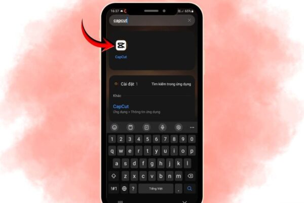 Tại màn hình chính điện thoại, bạn vuốt xuống để mở thanh tìm kiếm nhanh (hoặc tìm trực tiếp trong danh sách ứng dụng), nhập từ khóa “CapCut” và nhấn vào biểu tượng để khởi động. Nếu chưa cài đặt, bạn cần tải ứng dụng trước khi thực hiện các bước tiếp theo.