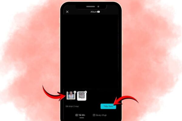 Trong giao diện Album, bạn chọn ảnh chân dung rõ mặt để hệ thống AI xử lý. Nếu template yêu cầu nhiều ảnh, bạn hãy chọn đúng số lượng theo hướng dẫn hiển thị trên màn hình. Sau khi chọn xong, nhấn “Tiếp theo” để bắt đầu quá trình tạo video.