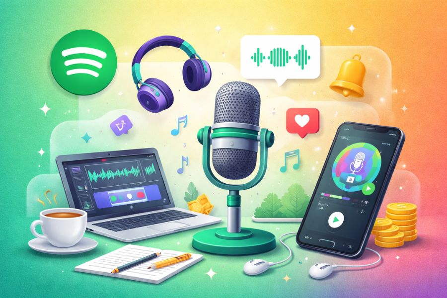 Trong thời đại nội dung số bùng nổ mạnh mẽ, Podcast đang dần trở thành “mảnh đất vàng” để chia sẻ kiến thức, câu chuyện và xây dựng thương hiệu cá nhân một cách bền vững. Nếu bạn đang tìm cách tạo Podcast trên Spotify để lan tỏa ý tưởng của mình đến hàng triệu người nghe trên toàn cầu mà không tốn chi phí, thì đây chính là bài viết dành cho bạn. Không chỉ giúp bạn tiếp cận tệp khán giả rộng lớn, Podcast còn mở ra nhiều cơ hội kiếm tiền hấp dẫn nếu biết khai thác đúng cách. Vậy cách làm Podcast trên Spotify có mất tiền không? Người mới bắt đầu cần chuẩn bị những gì? Hãy cùng Thế Giới Phần Mềm AI khám phá hướng dẫn tạo Podcast trên Spotify miễn phí từ A–Z trong bài viết chi tiết dưới đây.