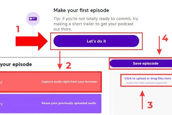 Sau khi hoàn tất kênh, bạn chọn Let’s do it để bắt đầu sản xuất tập Podcast đầu tiên. Anchor cho phép bạn tải file âm thanh có sẵn hoặc thu âm trực tiếp ngay trên nền tảng.