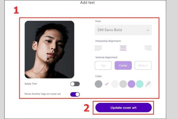 Anchor cung cấp công cụ tạo ảnh bìa trực tiếp với nhiều mẫu có sẵn, phù hợp cho người không rành thiết kế. Bạn có thể chỉnh màu sắc, font chữ hoặc tải lên hình ảnh riêng của mình để tạo dấu ấn cá nhân.