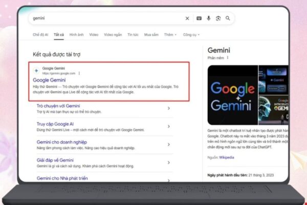 Đầu tiên, bạn mở trình duyệt trên máy tính và vào Google, sau đó gõ từ khóa Gemini AI. Kết quả tìm kiếm sẽ hiển thị nền tảng Gemini của Google, bạn chỉ cần nhấn vào đúng trang chính thức để bắt đầu. Ngoài ra, để tiết kiệm thời gian, bạn có thể truy cập trực tiếp tại địa chỉ gemini.google.com.