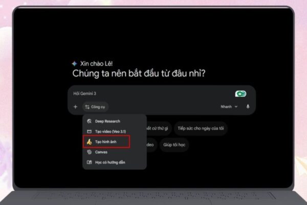 Khi đã vào giao diện chính, bạn tìm đến mục Công cụ. Tại đây, Gemini cung cấp nhiều tính năng khác nhau như hỗ trợ viết nội dung, phân tích thông tin và tạo hình ảnh. Để làm sticker Tết, bạn chọn vào Tạo hình ảnh.