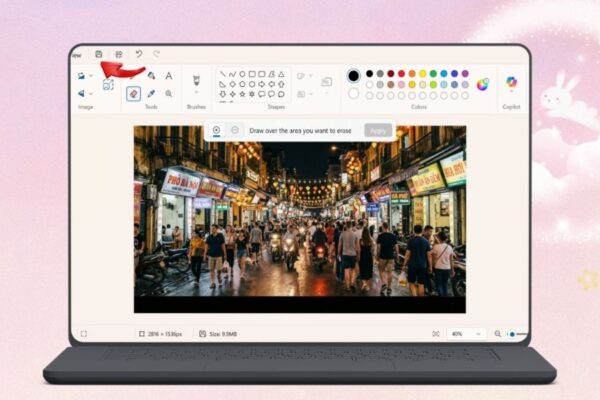 Sau khi ảnh được mở trong Paint, hãy kiểm tra lại vị trí watermark Gemini trên hình. Thông thường, biểu tượng lấp lánh này nằm ở góc dưới bên phải. Việc xác định đúng khu vực chứa watermark sẽ giúp quá trình xóa vật thể bằng AI diễn ra nhanh chóng và chính xác hơn, đồng thời hạn chế ảnh hưởng đến các chi tiết xung quanh.